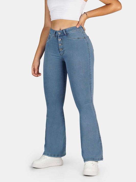 Jeans Bota Ancha Strech, Tiro Alto Ref 1237