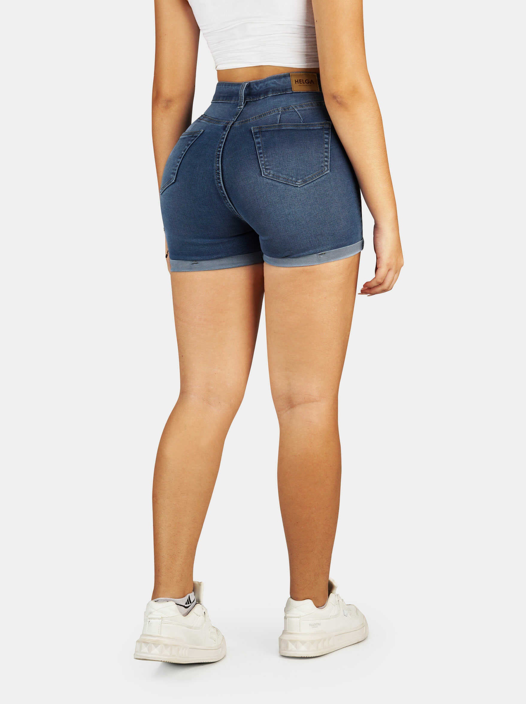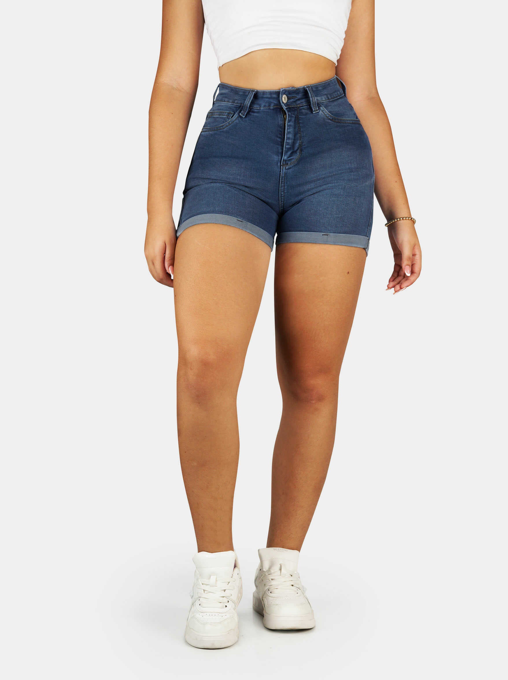 Torero Skinny Strech Levanta Cola, tiro alto, tono azul oscuro, cintura ajustada, la modelo mide 1.68 cm y usa talla 8.